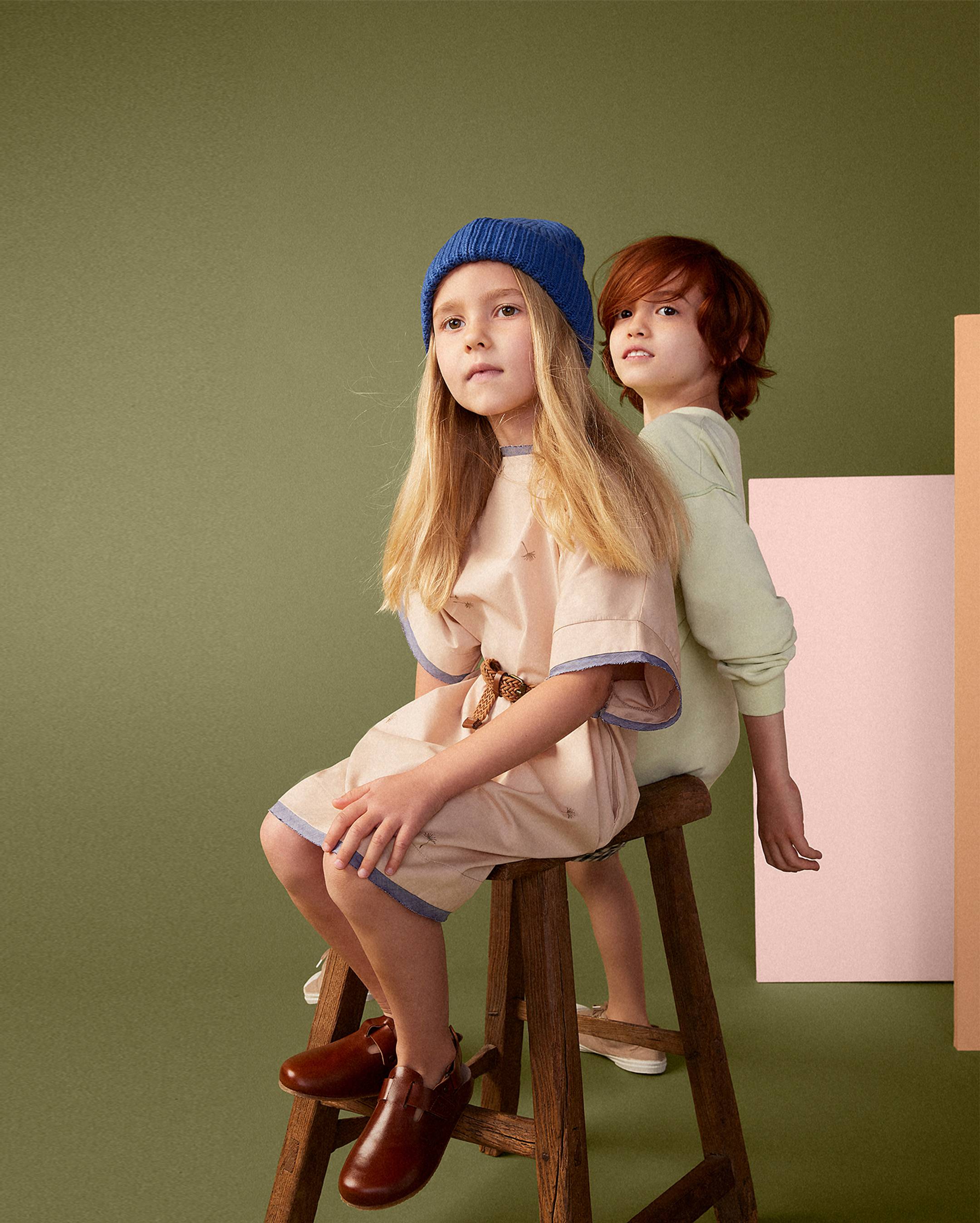 Merging both structure and free flowing shapes, the collection’s workwear inspired pieces bring a smart and elevated aspect to children’s clothing.